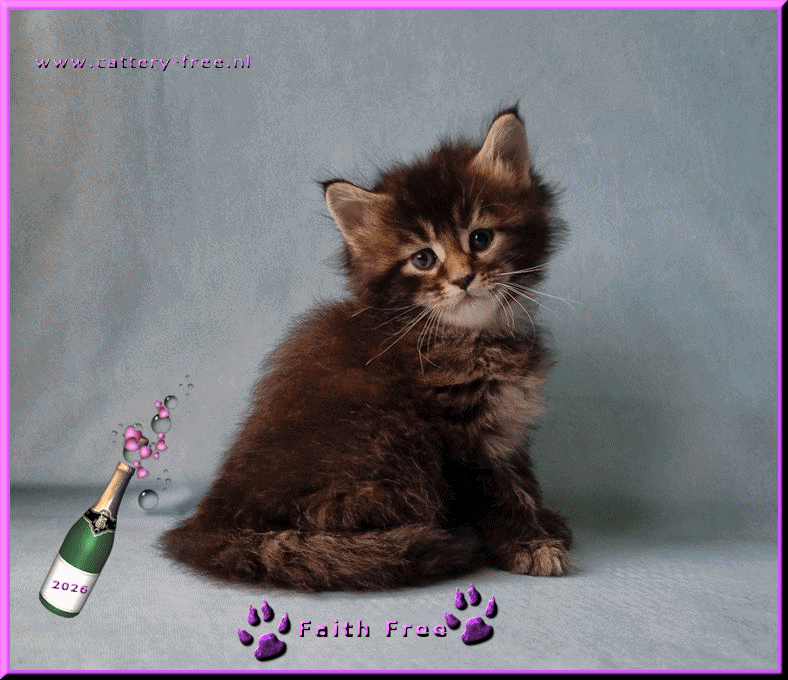 Poes:Faith Free Kleur:black tortie tabby ticked Foto © Foto's Saskia Vissers De prijs van een kitten Monique & SaskiaReinoutlaan 1615665AR Geldrop0031-(0)40-2853613 Copyright© 2026 by author all rights reserved Cattery Free