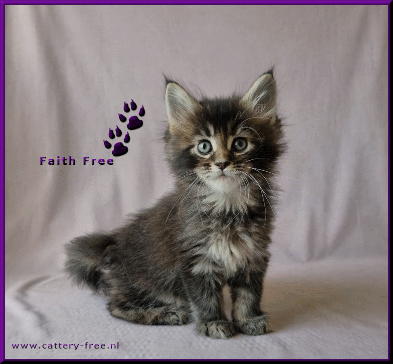 Poes:Faith Free Kleur:black tortie tabby ticked Foto © Foto's Saskia Vissers De prijs van een kitten Monique & SaskiaReinoutlaan 1615665AR Geldrop0031-(0)40-2853613 Copyright© 2026 by author all rights reserved Cattery Free