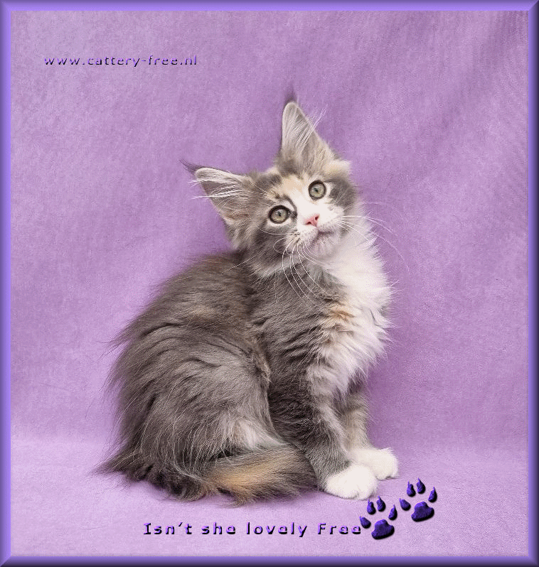 Poes:Isn’t she lovely Free Kleur:blue tortie tabby white ticked Foto © Foto's Saskia Vissers De prijs van een kitten Monique & SaskiaReinoutlaan 1615665AR Geldrop0031-(0)40-2853613 Copyright© 2026 by author all rights reserved Cattery Free