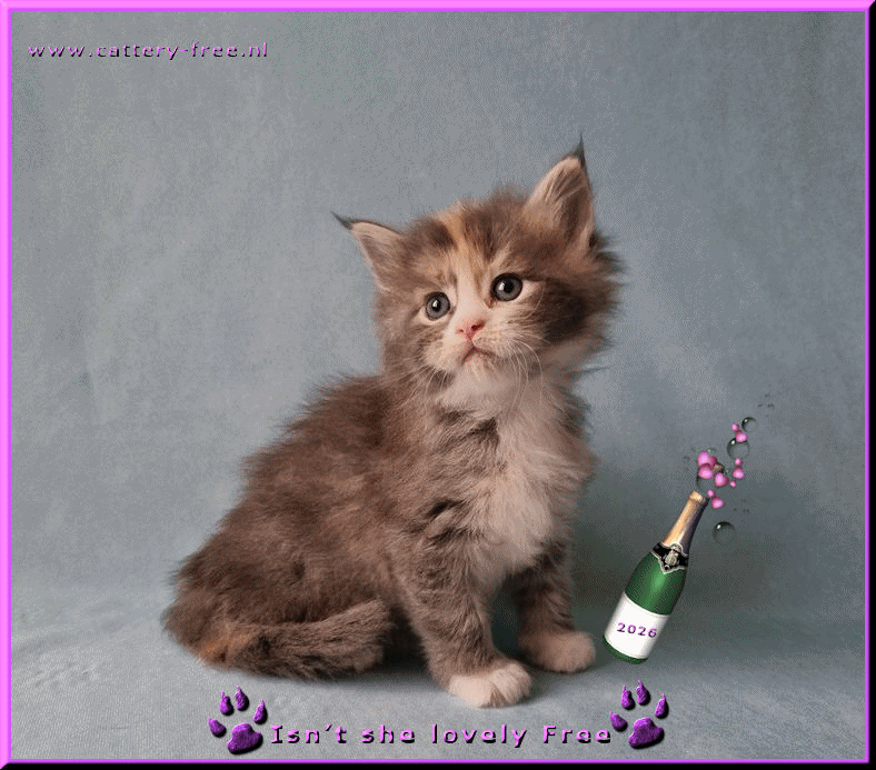 Poes:Isn’t she lovely Free Kleur:blue tortie tabby white ticked Foto © Foto's Saskia Vissers De prijs van een kitten Monique & SaskiaReinoutlaan 1615665AR Geldrop0031-(0)40-2853613 Copyright© 2026 by author all rights reserved Cattery Free