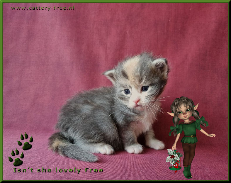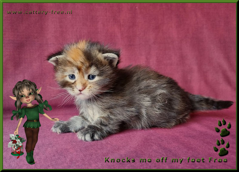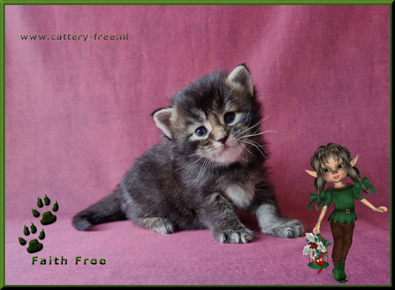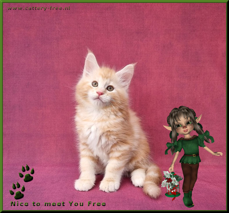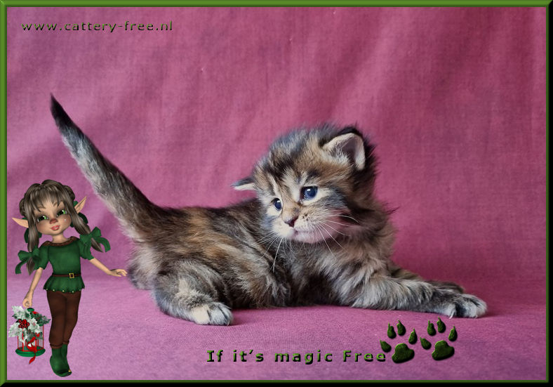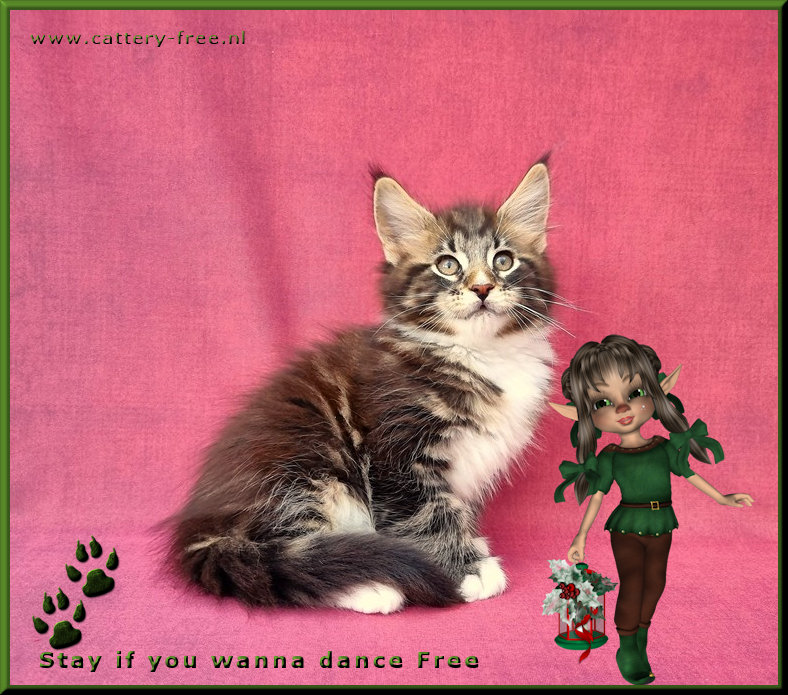 De kittens hebben de gehele dag beschikking over hun personeel en worden in huiselijke kring opgevoed. Voordat de kittens naar hun nieuwe eigenaar toe mogen zijn ze minimaal 14 weken oud, volledig gecheckt door onze DA, ontwormd, gechipt en twee maal geent voorzien van een Europees dierenpaspoort en stamboom. Katers en poezen zijn reeds gecastreerd voor vertrek. Kittens die naar Belgie verhuizen worden extra voorzien van een Rabies enting. De nieuwe eigenaar krijgt een leuk kittenboek mee waar de eerste weken van hun kitten in staan plus andere nuttige info, een usb-stick vol met foto's, speeltjes en voer voor de eerste paar dagen. Kittens worden niet alleen geplaatst!! Er moet minimaal een andere kat aanwezig zijn die het leuk vindt om er een speelmaatje bij te krijgen. Een korte uitleg hoe wij werken: Wij willen de mensen graag uitnodigen in onze cattery om kennis te komen maken. Mensen mogen ons alles vragen (graag zelfs!) en alles zien. Natuurlijk ook knuffelen met alle poezels en kittens. Bij vertrek krijgen de mensen van ons, geheel vrijblijvend, ons contract mee naar huis. Die gaan ze op hun gemak thuis lezen. Na een dag of drie nemen we contact met elkaar op, en als er voor beide partijen een klik is, dan pas gaan wij over tot verkoop. Opties worden dus niet op voorhand gegeven, enkel na de kennismaking. Indien er van 1 kant geen goed gevoel is, dan gaat de koop niet door. U moet zich namelijk goed bij ons voelen en wij moeten er zeker van zijn dat u degene bent met het gouden mandje. Wij verwachten verder, naast een liefdevol thuis, een coonproof krabpaal, hoogwaardig brokvoer wat de hele dag tot hun beschikking staat, elke dag vers water en een netjes bijgehouden kattenbak. Coons van ons mogen niet onbeheerd los buiten lopen, dus een balkon of tuin is helemaal prima, maar dan wel afgezet zodat ze niet kunnen ontsnappen. Heeft u geen mogelijkheid voor een frisse neus, dat is zeker geen probleem zolang u maar een flinke krabpaal neerzet waar ze zich in kunnen uitleven. Zodra het kitten mag verhuizen dan komen wij ze zelf brengen. Op deze manier kunnen we hun nieuwe leefomgeving en nieuwe speelmaatje(s) bekijken, en indien nodig advies geven. In de tussenliggende periode vinden wij het leuk als u zo nu en dan op knuffelvisite komt. Wij zijn geen fokkers die klaar zijn met hun kinders als ze eenmaal zijn verhuisd. We zullen voor u altijd bereikbaar zijn als u vragen heeft. Ook vinden wij het leuk om op zijn tijd een update te ontvangen hoe het met het kitten gaat. Heeft u interesse en vooral geen haast? Stuur een leuke uitgebreide mail waarin u vertelt waarom u degene bent die het gouden mandje kan bieden voor een van onze kanjers. Korte mails of mails met uitsluitend de vraag wat een kitten kost nemen wij niet serieus! |