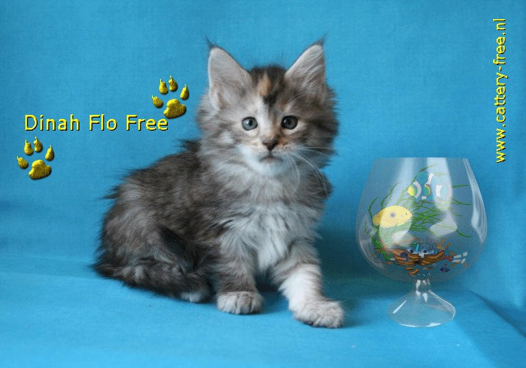 Poes: Dinah Flo Free Kleur:Black silver tortie mackerel